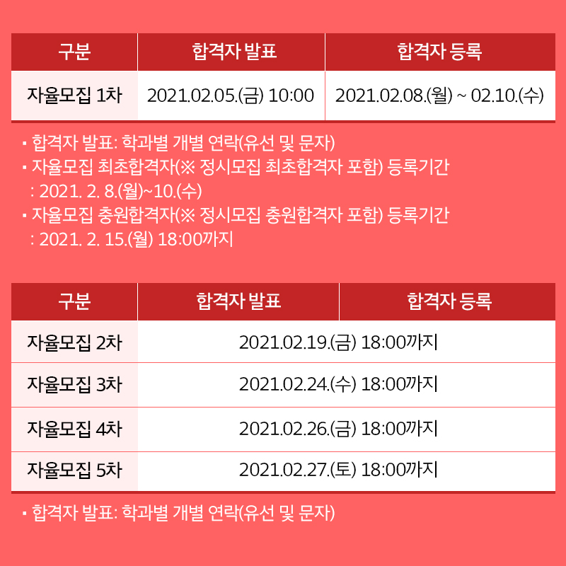 | 제목 | 정시 및 자율모집 합격자 발표 등록 일정 안내 | ||||